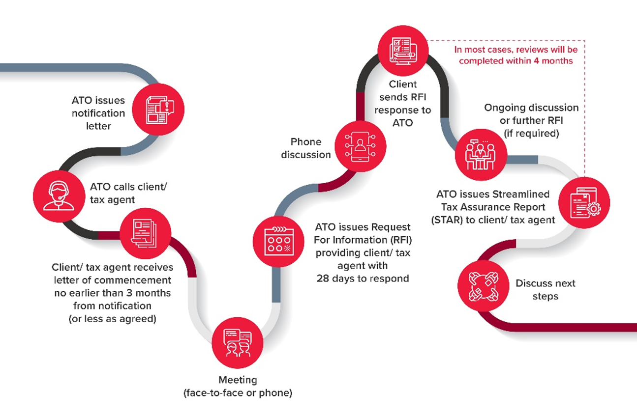 The following diagram, based on the ATO’s review roadmap, outlines the expected process and timeframes.