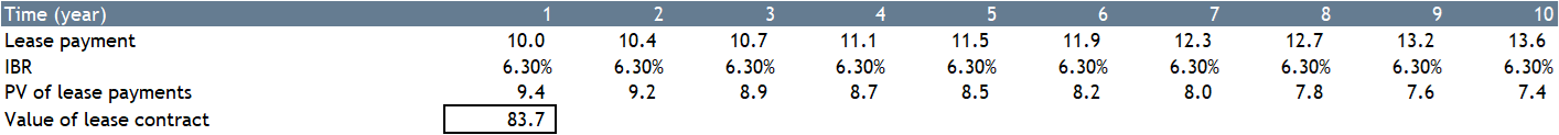 Table 4 – Value of lease assuming a 10-year discount rate (IBR)