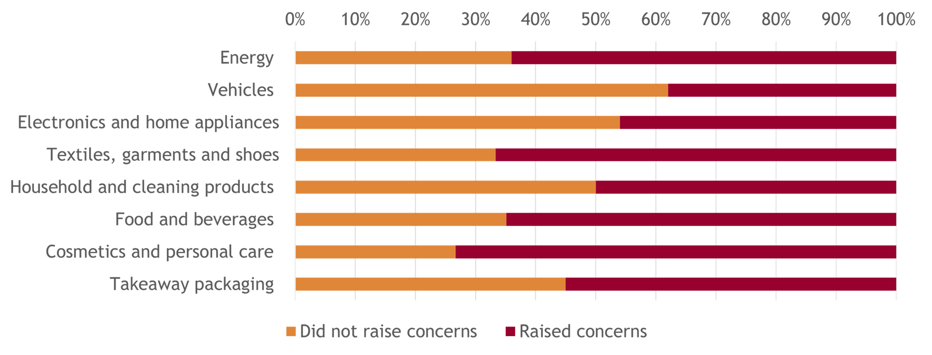 At the other end of the spectrum, 62% of websites in the vehicles sector did not raise concerns with their content, followed by electronics and home appliances (54%) and household and cleaning products (50%).