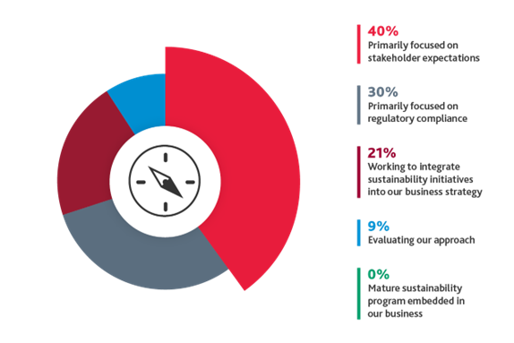 Most organisations are actively implementing sustainability strategies motivated by compliance (30 per cent) and stakeholder demands (40 per cent). As they do so, businesses must maintain an agile approach to adapt to potential shifts in sustainability-related external pressures and regulatory policies. Meanwhile, 9 per cent are still in the evaluation phase, and none have fully embedded mature sustainability operations into the business operations..png)