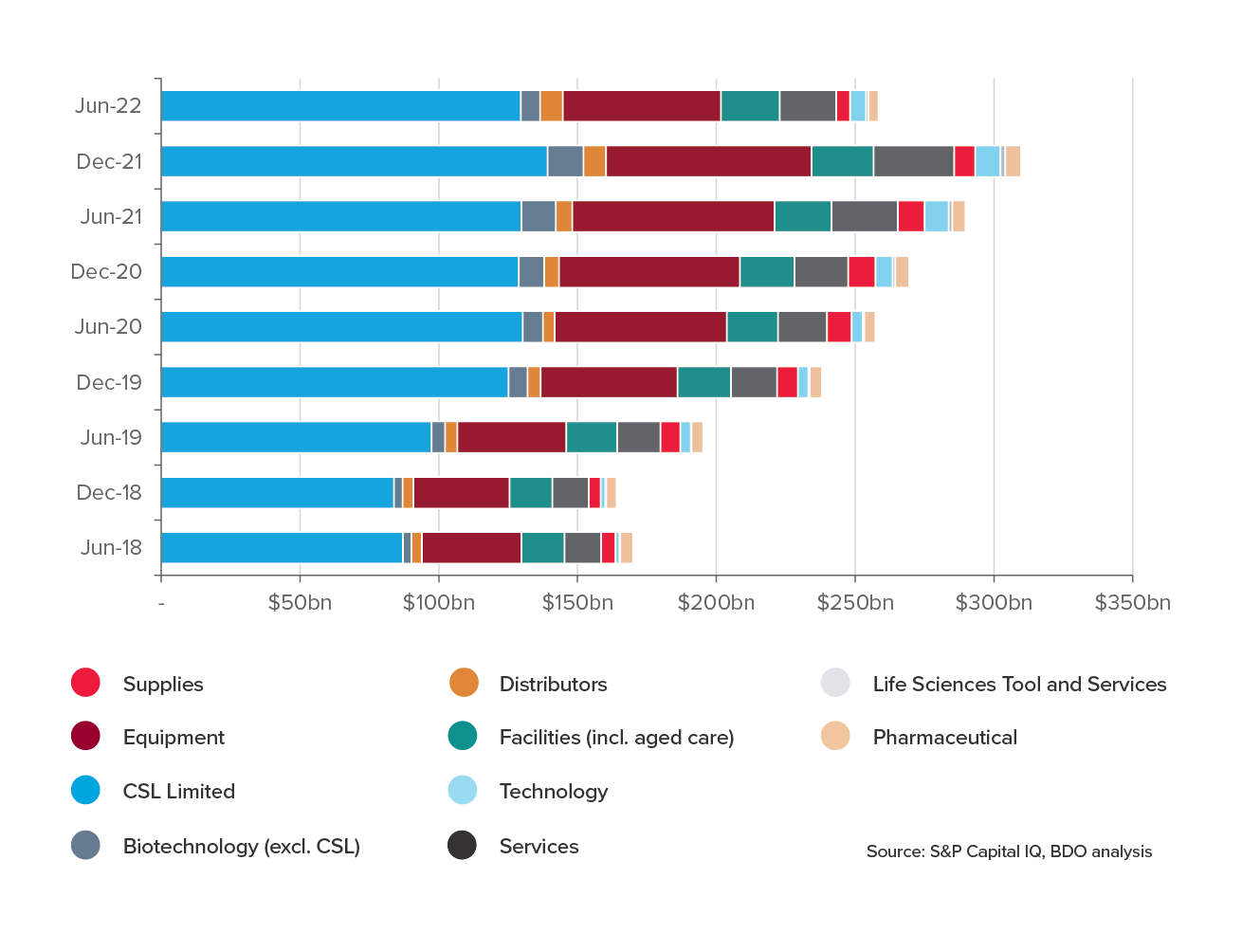 The sector’s stability and long-term growth prospects, particularly in pharmaceuticals and biotechnology, is attractive characteristic for institutional and retail investors, resulting in the ASX healthcare index outperforming the resources, technology, industrial and financial sectors over the last five years.